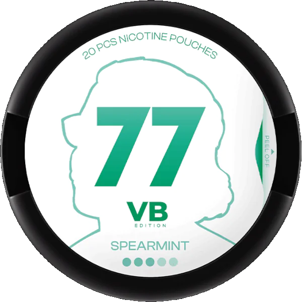 77 VB Spearmint är ett vitt, tobaksfritt nikotinsnus från 77 Snus (Luna Corporate). Produkten levereras i slim-format och innehåller 20 portioner. Fyllningen består av växtfiberbaserat All White-material som inte missfärgar och ger en jämn frisättning av smak. 77 VB Spearmint har en tydlig spearmintkaraktär och tillhör styrkekategorin “Stark”, med nikotininnehåll enligt 77 Snus egna specifikationer. Mer information om övriga produkter i samma kategori finns på: