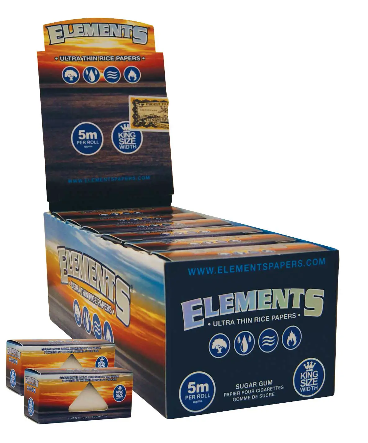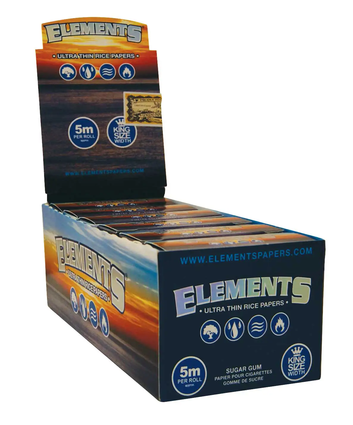 ELEMENTS BLUE ROLLS KS Box-12 innehåller 12 rullar av högkvalitativt blått King Size-rullpapper på 5 meter vardera. Tillverkat av ultratunt rispapper med sockerbaserat lim för en långsam, jämn och ren förbränning. Perfekt för både nybörjare och erfarna rullare som söker ett miljövänligt alternativ utan kemikalier. Varje rulle ger dig den kontroll och bekvämlighet du behöver för att skapa den perfekta rullningen.