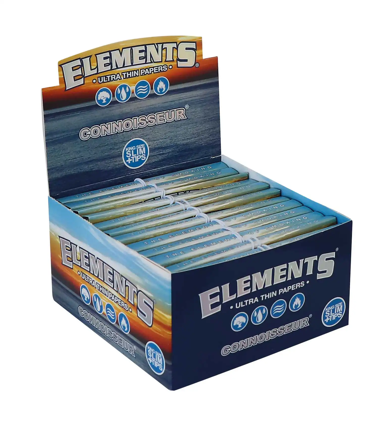 👉 Köp ELEMENTS CONNOISSEUR – KS SLIM + TIPS BOX-24 – 32 LEAVES hos Veloop.se