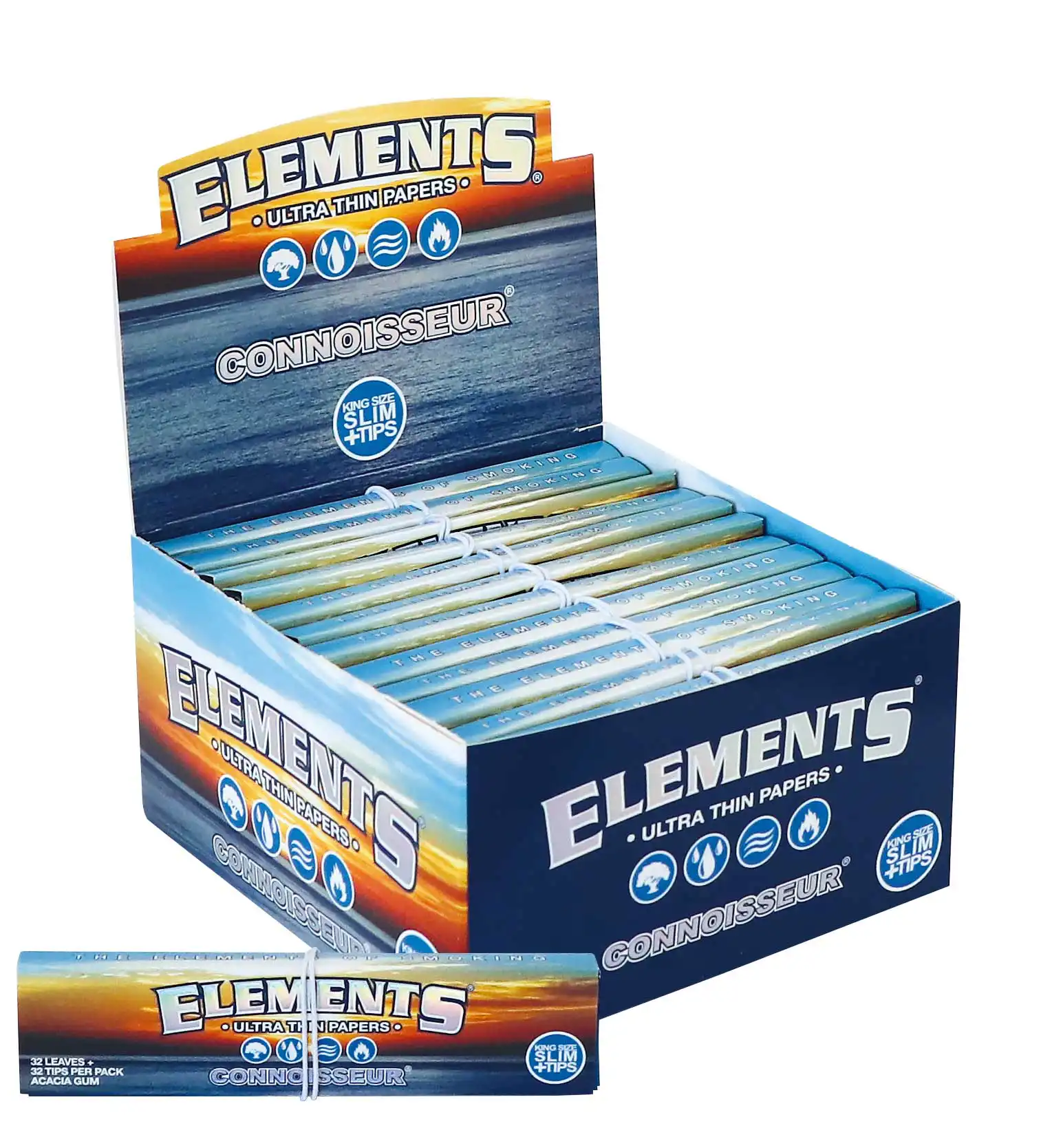 ELEMENTS CONNOISSEUR KS SLIM + TIPS 32 LEAVES