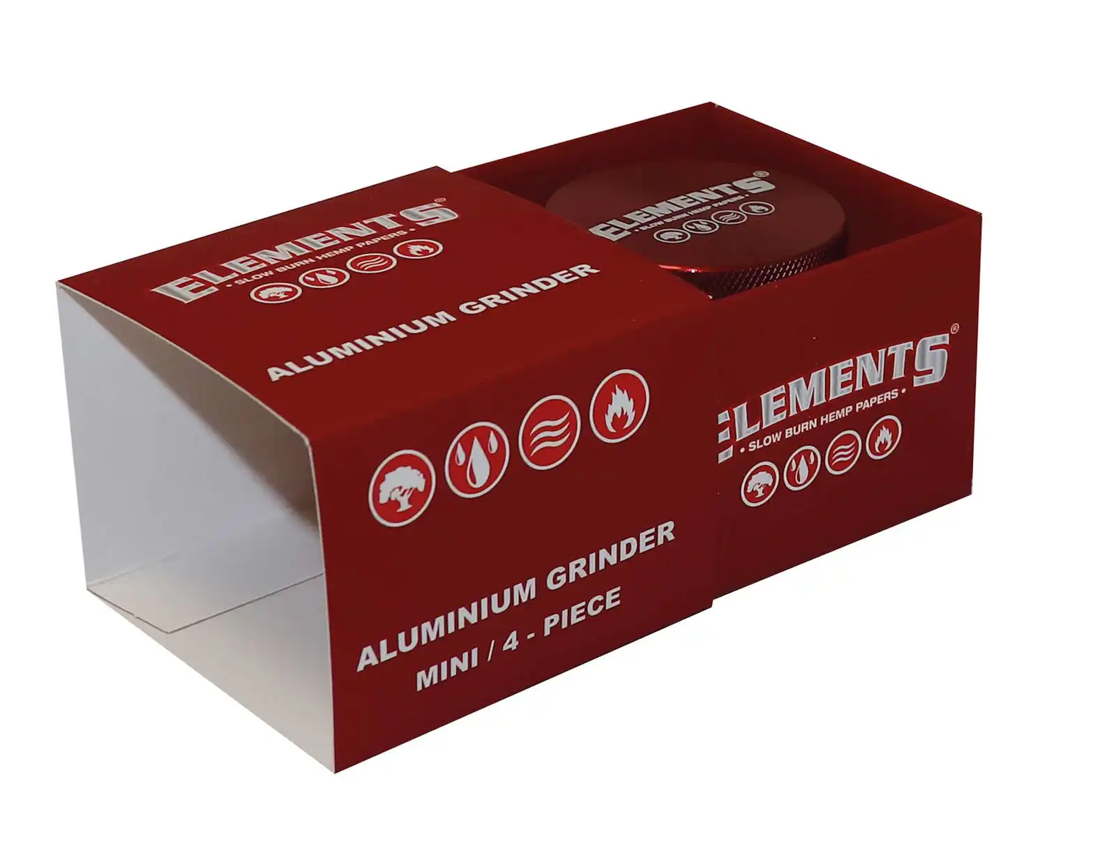 Beställ ELEMENTS RED GRINDER ALUMINIUM 4 PART MINI direkt från Veloop.se – Sveriges pålitliga butik för grinders, rullpapper och premiumtillbehör.